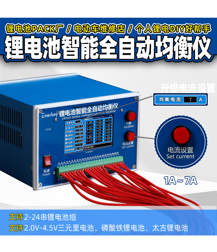 安全,均衡時(shí)間快24S7A均衡電流//支持2-24串鋰電池